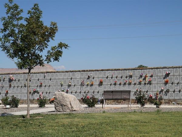 There are landscaped areas for in-ground interments that are characterized by thoughtful placement of trees, shrubs, and other plantings. These areas provide additional places for individual reflection.