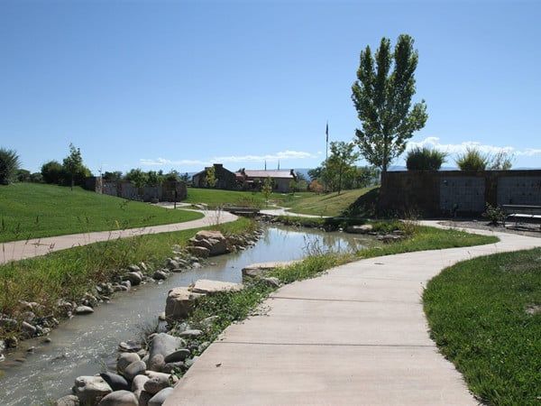 There are memorial walks on either side of the creek running northeast to southwest through the Cemetery. These walks pass by each of the five columbaria in front of which are benches for visitors.